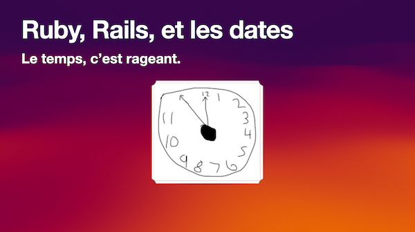 Ayant été victime d’un bug lié à l’heure d’été, j’ai commencé à creuser le sujet. Cette présentation de 20 minutes couvre les bases de la gestion du temps en informatique, avec des exemples de code en Ruby et Rails. Et des memes, on ne se refait pas !